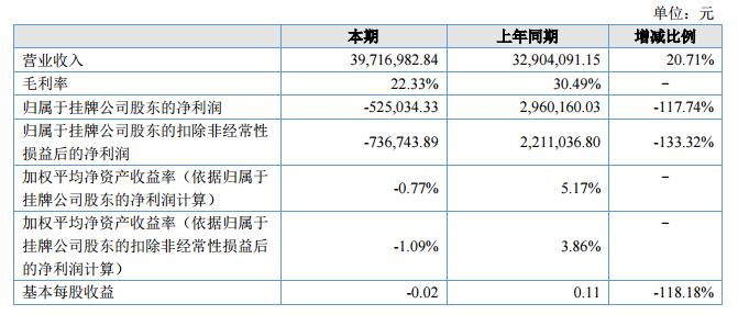 報告期內(nèi),公司整體經(jīng)營情況良好,公司實(shí)現(xiàn)銷售收入3,971.70萬元,同比增長20.71%;凈利潤為-123.40萬元,同比減少145.15%。