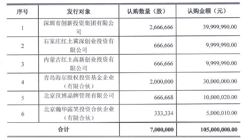 這次認(rèn)購多牛傳媒的投資者共有6名,包括深圳市創(chuàng)新投資集團(tuán)有限公司、石家莊紅土冀深創(chuàng)業(yè)投資有限公司、青島海爾股權(quán)投資基金企業(yè)(有限合伙)等知名機(jī)構(gòu)投資者。